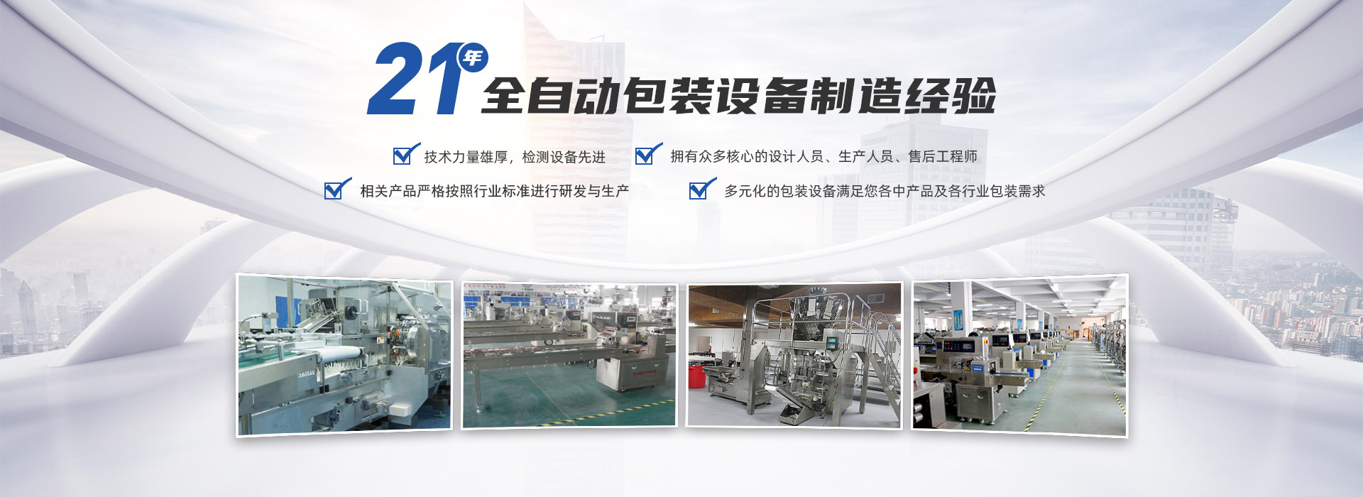 我公司一直致力于包裝機(jī)械的研發(fā)與創(chuàng)新,自行設(shè)計的藥用輸液瓶、軟袋自動包裝機(jī)、旁推鏈全自動枕式包裝機(jī)、紙巾包裝機(jī)、濕巾包裝機(jī)與吸管全自動包裝生產(chǎn)線、異形穿孔自動包裝機(jī)、GZB型系列高速枕式自動包裝機(jī)、食品包裝機(jī)等產(chǎn)品,以可靠的質(zhì)量和良好的企業(yè)誠信贏得了國內(nèi)外用戶的信賴。